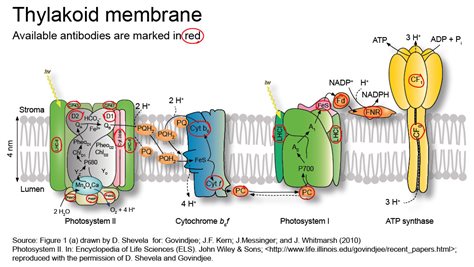 光合色素吸收光能后,把能量聚集到反應(yīng)中心(葉綠素a分子),引起電荷分離和光化學(xué)反應(yīng)。一方面將水氧化,放出氧氣;另一方面把電子傳遞給輔酶II(NADP+),將它還原成NADPH,其間經(jīng)過(guò)一系列中間載體。光合電子傳遞的主要載體有質(zhì)體醌(PQ)、細(xì)胞色素b6(Cytb6)、質(zhì)藍(lán)素(PC)、鐵氧還素(Fd)、Fd-NADP還原酶(FNR)。目前普遍接受的光合電子傳遞途徑為Z形方案,認(rèn)為光合電子傳遞鏈?zhǔn)怯?/span>PSI和PSII以及連接兩個(gè)光系統(tǒng)的一系列電子載體組成,電子傳遞鏈上各個(gè)載體按其氧化還原電位高低,成Z形串聯(lián)排列。電子傳遞載體相關(guān)抗體見(jiàn)下表(僅列舉部分產(chǎn)品):