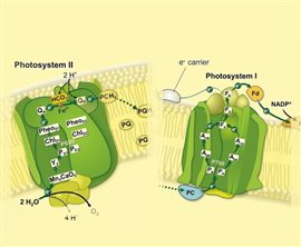 光合作用高效的吸能、傳能、轉能過程是在光合膜上具有一定分子排列空間構象的色素蛋白復合體上進行的,并在10-15秒至10-7秒內(nèi)完成。整合于光合膜上的色素蛋白復合物根據(jù)功能通常分為:光系統(tǒng)I(PSI)、光系統(tǒng)II(PSII)、Cytb6f復合物以及ATP合成酶復合物。在這4個色素蛋白復合體共同參與下,光合作用的光反應完成電子從H2O到NADP+的傳遞并產(chǎn)生ATP和釋放O2。PSI和PSII是生物光能轉換的重要場所,涉及水裂解放氧反應和原初電荷分離等關鍵步驟,是決定光合作用效率的重要部位。