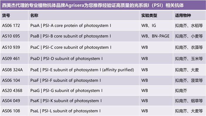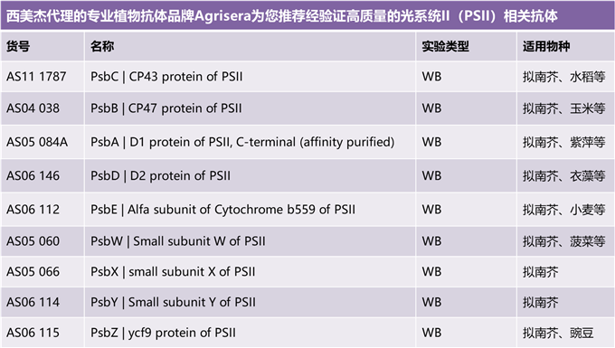 為滿足廣大光合作用研究方向客戶的需求,西美杰聯(lián)合專業(yè)抗體品牌Agrisera推出光系統(tǒng)PSI和PSII相關抗體促銷活動!活動內(nèi)容如下: