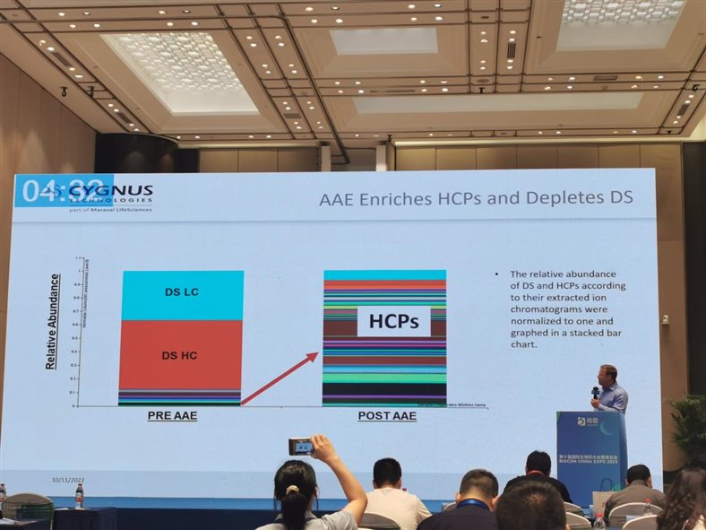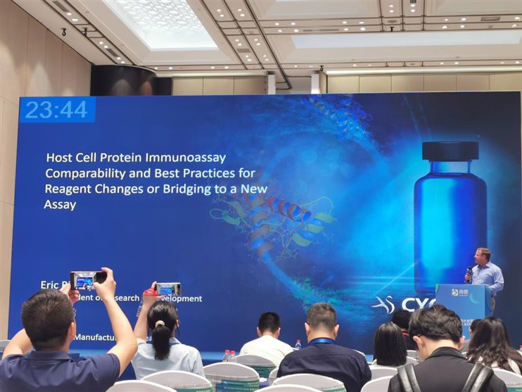 在抗體蛋白制品工藝開發(fā)與BLA會場,Cygnus研發(fā)副總裁Eric Bishop為廣大客戶做了題為“ Advanced Orthogonal Methods for Qualification and Bridging of Host Cell Protein ELISAs”的精彩演講,向大家介紹和分享了覆蓋率分析的最新方法和代表性的案例,獲得了聽眾的一致好評。
