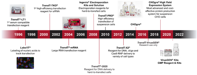 西美杰代理的美國Mirus公司成立于1995年,是世界上很早開發(fā)高效、低毒轉(zhuǎn)染試劑的公司,同時也是該類試劑的主要供應商之一。其產(chǎn)品線涵蓋化學轉(zhuǎn)染試劑、電轉(zhuǎn)染產(chǎn)品、病毒生產(chǎn)和轉(zhuǎn)導產(chǎn)品,適用于基因功能研究、蛋白生產(chǎn)、病毒載體生產(chǎn)和動物模型構(gòu)建等領域。Mirus被公認為轉(zhuǎn)染試劑開發(fā)的領跑者,其許多杰出成果獲得世界公認與廣大用戶的好評。