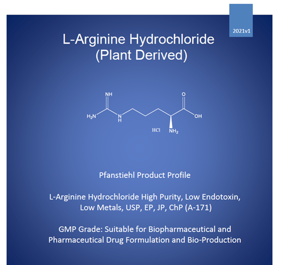 產品名稱:L – Arginine Hydrochloride, High Purity, Low Endotoxin, Low Metals, USP, EP, JP, ChP