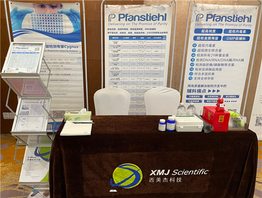 As a supplier with 18 years of professional experience serving biopharmaceutical enterprises, Beijing XMJ was invited to participate in the exhibition. At this forum, it exhibited products related to biopharmaceutical stability, such as Pfanstiehl's injectable pharmaceutical excipients (which feature high purity, low endotoxin, and compliance with pharmacopoeias of multiple countries), Cygnus's kits for detecting residual impurities related to bioprocesses (e.g., HCP detection kits), and Zhoufan Biology's CE-SDS kits, among many others.